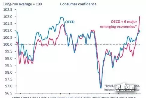 全球貿(mào)易走勢方面,國際貨幣基金組織(IMF)預(yù)測2018年全球經(jīng)濟(jì)和中國經(jīng)濟(jì)增速將分別達(dá)3.7%和6.5%,世界貿(mào)易組織(WTO)預(yù)測2018年全球貨物貿(mào)易量增長3.2%,略低于2017年的3.6%,顯著高于2015和2016年的2.6%和1.3%。消費者信心指數(shù)方面,國際航協(xié)數(shù)據(jù)顯示,消費者信心急劇上升,推動市場對空運貨物的需求,在巴西、俄羅斯、印度、中國等主要新興市場尤為明顯。油價方面,由于因美國減稅刺激國內(nèi)需求以及OPEC和俄羅斯延長減產(chǎn)協(xié)議承諾,油價將可能有所上漲至2018年底,2019年下半年布倫特價格將小幅下滑至58美元/桶。