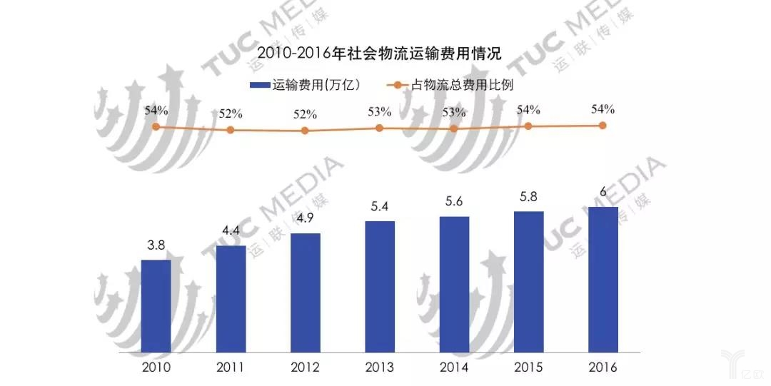 從2010年起社會物流運輸費用每年平均以53%的增長率快速上漲,2016年達到6萬億,這部分費用可有效的向物流金融進行轉化,物流金融市場存在巨大的潛力。