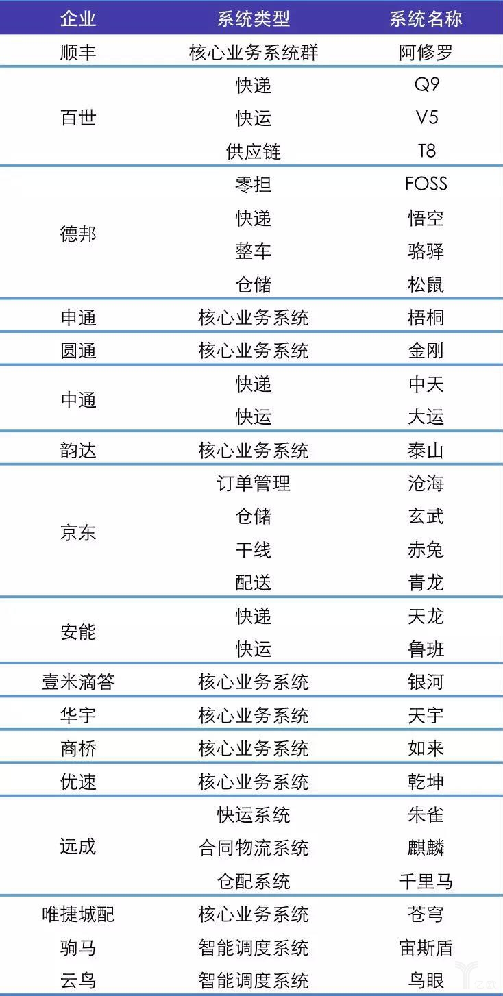 百世的系統是字母加數字的組合,體現了西方文化的風格;順豐的阿修羅和即將面世的舒華都是佛教的神,體現了王衛的佛教信仰;德邦的則是比較活潑、松鼠、駱驛、悟空代表了德邦年輕人的朝氣;壹米滴答的銀河、商橋的如來等則是體現了新模式企業家創業的偉大夢想。