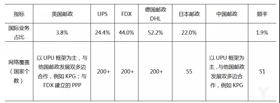 中美德日郵政業主要企業的國際業務及全球網絡覆蓋情況對比
