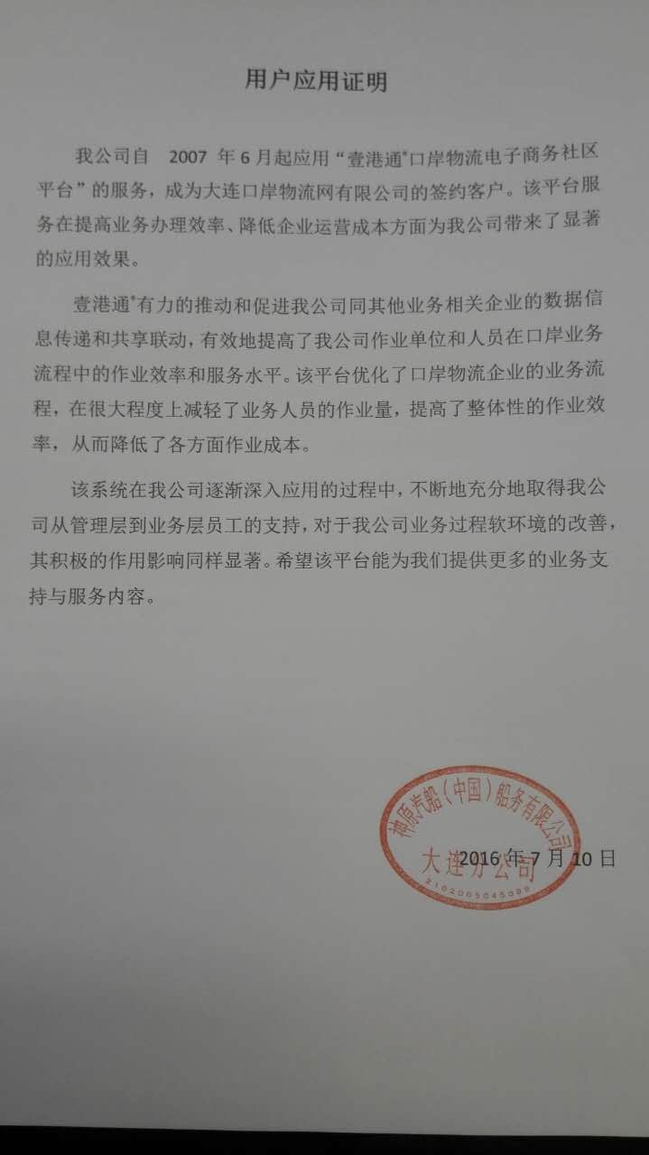 面對以上問題,DPN作為專注港航物流平臺建設運營近二十年的專業企業,針對具體問題積極尋求解決辦法,先面向信息化程度高、業務環節多、智能化操作要求高的碼頭客戶進行推廣突破,繼而激發碼頭業務鏈上下游物流企業的應用需求。截至目前,壹港通®口岸物流電子商務社區平臺累計簽約企業級用戶700余家,個人注冊用戶近萬名,覆蓋大連口岸100%的船代、碼頭、場站、車隊用戶,平臺服務獲得了廣大用戶單位的好評。