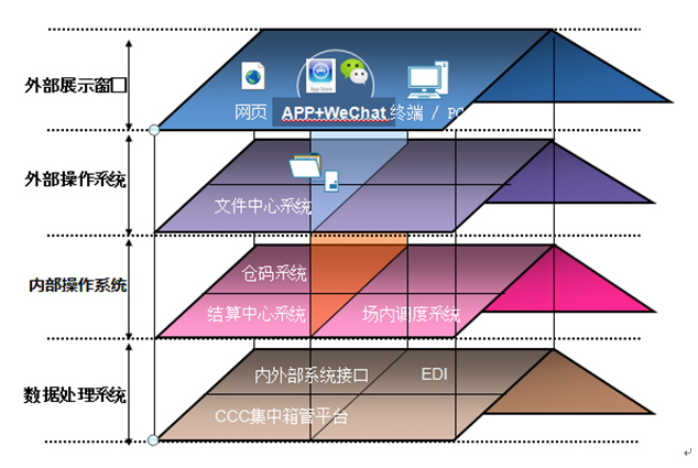? CCC集中箱管平臺屬于數據處理系統,它連接碼頭操作系統,通過EDI的方式向船公司客戶輸送集裝箱實時動態信息。