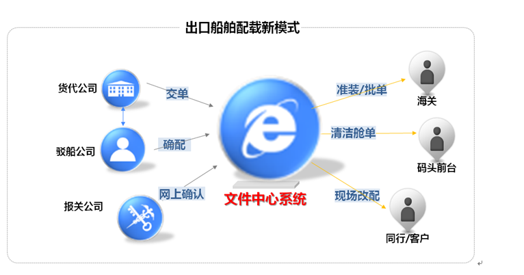 出口船舶配載功能是整合船公司、貨代公司等相關方線下船舶配載操作功能,為船公司、貨代公司等相關方提供一個統一操作、共享信息的平臺,并將原本分離的業務流、資金流進行統一,實現集裝箱出口放行配載無紙化。這個功能的實現,極大提升黃埔倉碼公司的市場競爭力及客戶服務能力,不僅使信息處理更加透明化,而且優化所有相關方的工作流程,減少人工工作量,降低人工成本。客戶體驗也得到大大的提高。