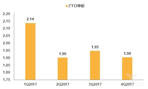 圖3:2017年逐季度ZTO快遞單價變化(元/票)