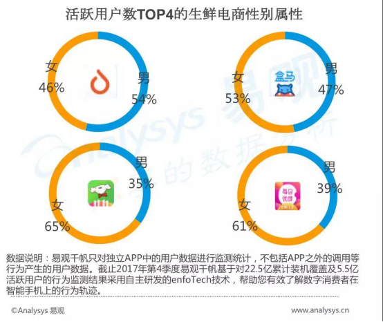 2017年生鮮電商領域活躍用戶穩步增長,網購生鮮消費習慣正在養成。近日,易觀發布了2018最新生鮮電商用戶畫像。結合上月初易觀發布的2018中國生鮮電商行業年度綜合分析數據,生鮮電商仍處于持續穩步增長階段。尤其是以多點Dmall、盒馬鮮生為代表的頭部品牌,正在引領著生鮮零售領域的升級和變革。