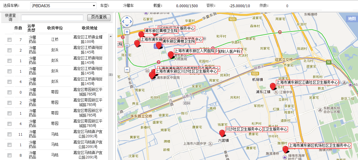 4. 可視化地圖派送安排,根據區域勾選安排車輛任務并顯示看板。