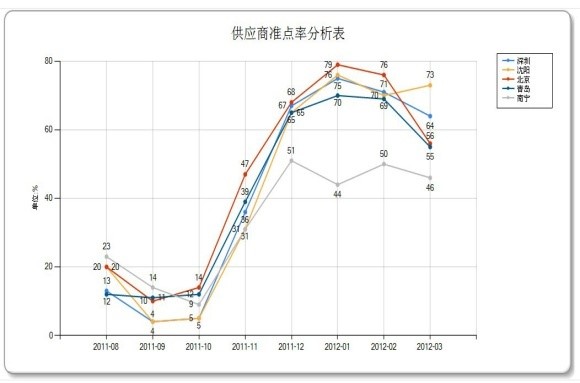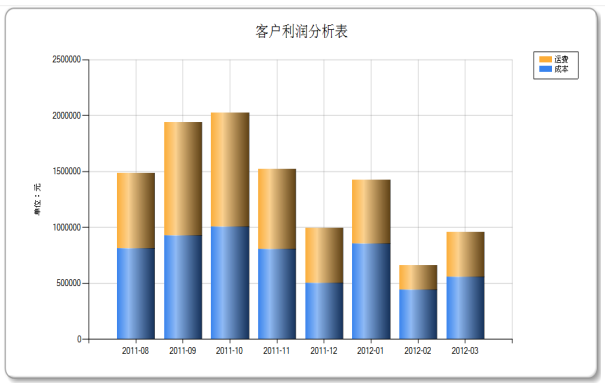 實現各種統計報表,功能包括:各種客戶發貨量統計報表、出貨量統計報表、收入報表、支出報表、運單利潤報表等,如圖10所示為供應商準點率分析表及客戶利潤分析表。