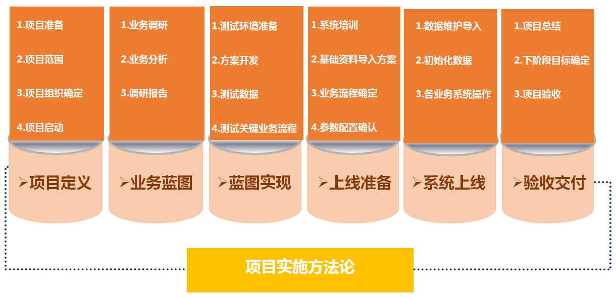 實施模式采用項目經理負責制,由專業咨詢隊伍組成,并要求客戶方成立相應的項目組織,共同組成項目實施小組,以保證項目的順利進行。實施控制包括項目實施計劃控制、問題跟蹤與報告機制、溝通機制、變動控制機制和項目實施檔案管理,保證了項目的質量和風險的控制,實現了項目的預期效益。提供上門/現場服務、電話/傳真服務、信件/電子郵件服務以及在線服務等服務途徑 ,即時響應客戶的服務需求,快速、及時解決客戶的問題。項目實施流程見圖1所示。