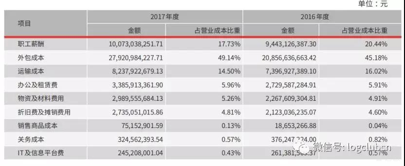我們再來看看“快遞之王”順豐成本方面的數(shù)據(jù):