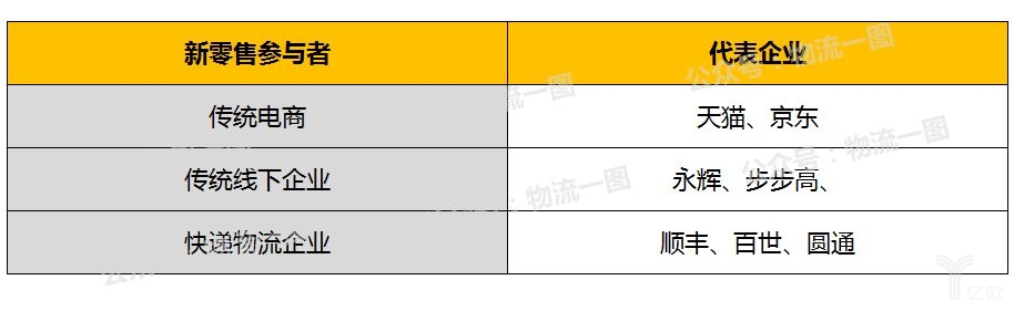 →參與新零售的三類企業(yè),即傳統(tǒng)電商、傳統(tǒng)線下和快遞物流企業(yè):