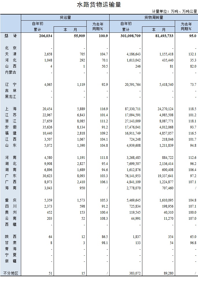 2018年4月水路貨物運輸量