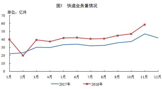 11月,全國快遞服務(wù)企業(yè)業(yè)務(wù)量完成58.6億件,同比增長24.4%;業(yè)務(wù)收入完成648.3億元,同比增長14.6%。