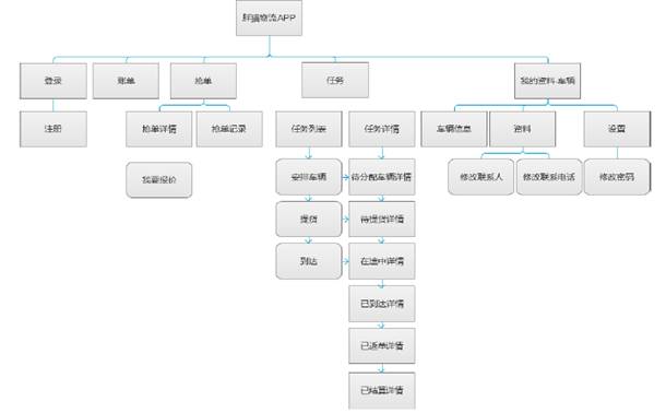 (1)移動終端平臺:基于安卓、IOS兩大系統的移動終端,分為會員認證系統、訂單搶單系統、運輸管理上報系統、車輛管理系統等四大系統,為同行業內率先實現用移動客戶端即可完成大宗商品物流的下單、選擇第三方物流供應商全過程的大宗商品物流移動互聯網技術產品,與此同時該產品還可以進行對第三方物流供應商車輛的管理。