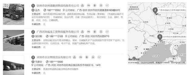(6)在車輛定位和監控方面,“行•好運”網曾與廣西區交通廳多次溝通,計劃接入國家交通物流公共信息平臺廣西節點的12噸以上貨車北斗GPS實現位置數據和歷史軌跡數據。由于條件不成熟,一直未接入成功。最后,“行•好運”網與中物聯網絡信息部進行溝通,與他們進行合作,接入車輛定位數據和軌跡數據接口,集成到“行•好運”網,供用戶實現監控運輸中的貨物以前管理企業的車輛。