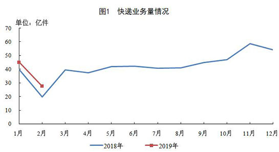 2月,全國(guó)快遞服務(wù)企業(yè)業(yè)務(wù)量完成27.6億件,同比增長(zhǎng)38.7%;業(yè)務(wù)收入完成350.2億元,同比增長(zhǎng)21%。