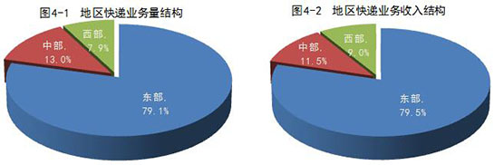 1-2月,東、中、西部地區(qū)快遞業(yè)務(wù)量比重分別為79.1%、13%和7.9%,業(yè)務(wù)收入比重分別為79.5%、11.5%和9%。與去年同期相比,東部地區(qū)快遞業(yè)務(wù)量比重下降了1個(gè)百分點(diǎn),快遞業(yè)務(wù)收入比重下降了0.5個(gè)百分點(diǎn);中部地區(qū)快遞業(yè)務(wù)量比重上升了1.1個(gè)百分點(diǎn),快遞業(yè)務(wù)收入比重上升了0.4個(gè)百分點(diǎn);西部地區(qū)快遞業(yè)務(wù)量比重下降了0.1個(gè)百分點(diǎn),快遞業(yè)務(wù)收入比重上升了0.1個(gè)百分點(diǎn)。