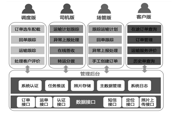 圖1 運(yùn)輸系統(tǒng)移動(dòng)應(yīng)用功能設(shè)計(jì)