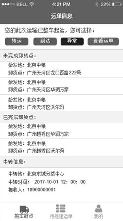 圖2 運(yùn)輸系統(tǒng)移動(dòng)應(yīng)用實(shí)操界面