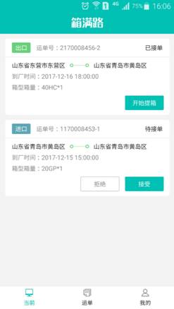 平臺車隊所屬的駕駛員注冊登錄箱滿路手機APP之后,就可以在線接受車隊下發(fā)的運單,改變了傳統(tǒng)的通過電話、傳真、短信等線下方式進行陸運派車的行業(yè)傳統(tǒng),手機APP成為匯集查閱運輸任務(wù)、運單詳情、節(jié)點反饋、積分評價等功能的新工具。司機端手機APP最大的好處是實現(xiàn)了業(yè)務(wù)流程標(biāo)準(zhǔn)化,不再需要熟悉任何流程,操作簡單方便。