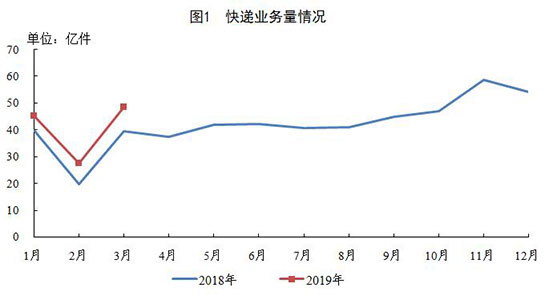 3月份,全行業(yè)業(yè)務收入完成799.1億元,同比增長19.4%;業(yè)務總量完成1255.6億元,同比增長24.3%。