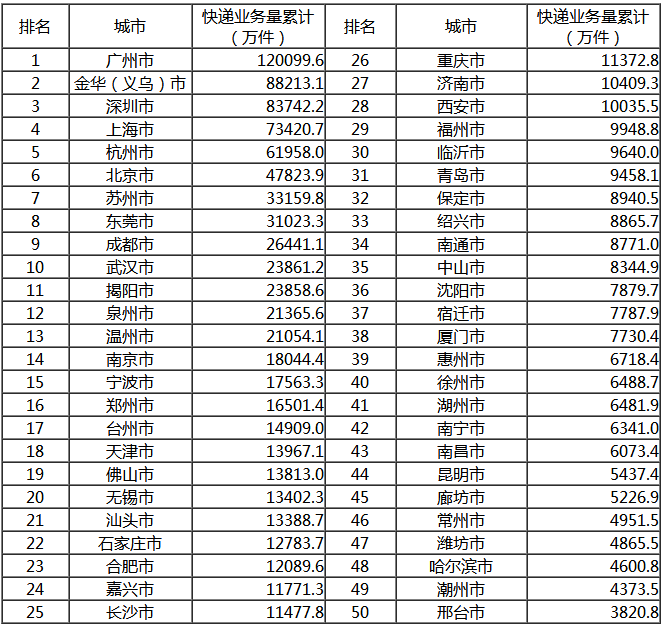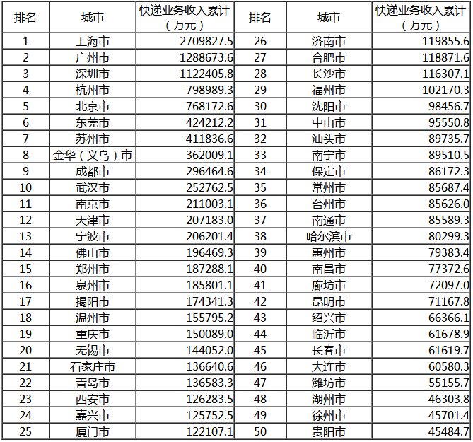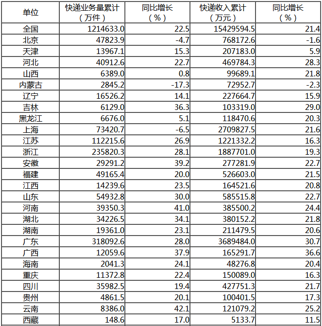 分省快遞服務企業(yè)業(yè)務量和業(yè)務收入情況表