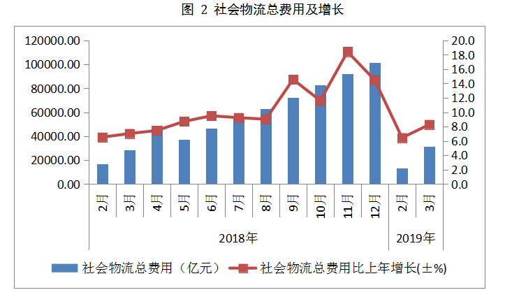 2019年一季度物流運行總體平穩(wěn),社會物流總額平穩(wěn)增長,物流市場規(guī)模穩(wěn)步擴張,社會物流總費用增速比去年全年有所回落。
