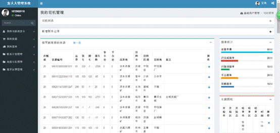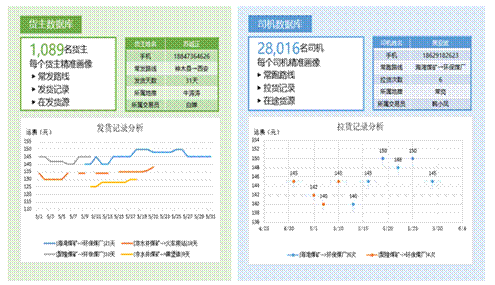 截止目前平臺上合作貨主有1,089名,合作司機(jī)有28,051名,每個貨主和司機(jī)都可以根據(jù)其常發(fā)(拉)路線、發(fā)(拉)貨記錄、在發(fā)(拉)貨源進(jìn)行精準(zhǔn)畫像。具體如下所示: