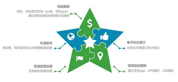 3、依托無車承運試點工作,建立無車承運平臺,實現車貨匹配、交易過程中的定金的收退、運價、運費的結算與支付以及信用評價體系等全過程透明化、清晰化,減少或杜絕物流行規中的一些不合規范的行為,打造清潔物流業態。