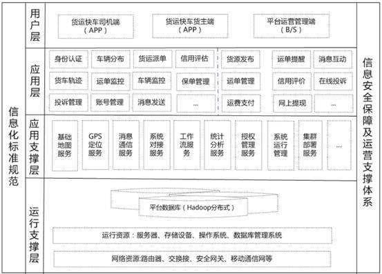 應(yīng)用支撐層:提供可重用基礎(chǔ)構(gòu)件, 實現(xiàn)系統(tǒng)基礎(chǔ)核心功能,實現(xiàn)與外部軟硬件集成融合功能,如貨車GPS位置定位等 運行支撐層:主要是對原始數(shù)據(jù)(分布式數(shù)據(jù)庫或文本文件等存放數(shù)據(jù)的形式)進行存儲以及提供硬件設(shè)備運行環(huán)境。