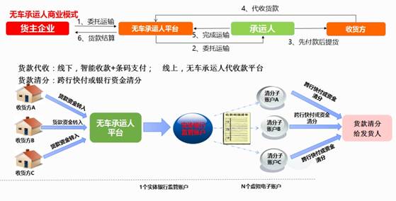 (2)平安銀行與我公司以無車承運人平臺為基礎(chǔ)聯(lián)合打造并開通了代收貨款功能,在平安銀行設(shè)立實體銀行監(jiān)管賬戶,以先進的線上+線下的收款方式及快速的跨行實時代付功能,完成整個代收貨款的全流程,有效的遏制了物流公司跑路給社會帶來的負(fù)面影響及不安定因素,真正通過無車承運人達到整合整個貨運市場的目標(biāo)。
