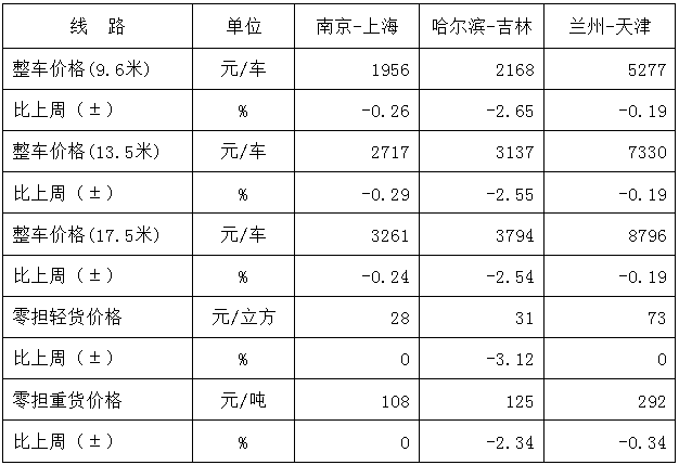 分車型看,各車型指數總體平穩,與上周相比基本持平。其中,整車指數為983.88點;零擔重貨指數為983.44點;零擔輕貨指數為968.20點。