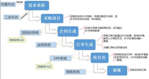 沒有全局角度對供應鏈系統(tǒng)各層次、各角度、各因素進行統(tǒng)籌規(guī)劃,對供應鏈全過程業(yè)務缺少統(tǒng)一的管理規(guī)范,與省內(nèi)ERP系統(tǒng)、工建系統(tǒng)、預算系統(tǒng)、報銷系統(tǒng)、合同系統(tǒng)、統(tǒng)一信息平臺和集團供應鏈系統(tǒng)、電子招投標系統(tǒng)、主數(shù)據(jù)平臺等系統(tǒng)之間沒有完全打通,IT業(yè)務流程固化和信息化手段建設比較薄弱。