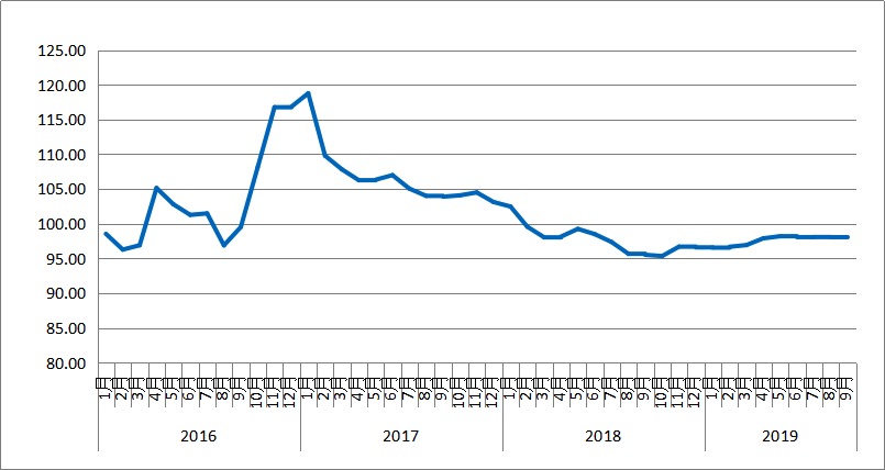 2019年9月份,由中國物流與采購聯(lián)合會和林安物流集團聯(lián)合調(diào)查的中國公路物流運價指數(shù)為98點,與上月相比小幅回落0.03%,但比去年同期增長2.6%。月內(nèi)各周指數(shù)運行平穩(wěn),其中第一、四周運價指數(shù)環(huán)比回落,第二、三周環(huán)比回升。