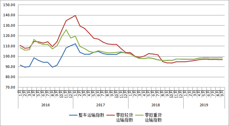 表1 2019年9月中國公路物流運價指數(shù)表