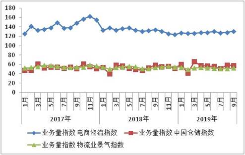 圖 3 物流業景氣指數、中國倉儲指數、電商物流指數業務量指數走勢