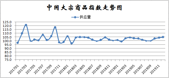 2019年12月份,大宗商品供應指數繼續回升0.7個百分點至104.9%,創下近兩年來新高,顯示國內大宗商品市場供應量持續增加,供應壓力進一步加大。從各主要商品來看,除成品油外,其余品種均呈現增加態勢,從生產企業的情況來看,由于環保限產政策較為寬松,加上節前存在補庫需求,產品生產相對穩定,導致商品供應量持續增加。
