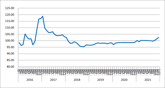 圖1 2016年以來各月中國公路物流運(yùn)價指數(shù)
