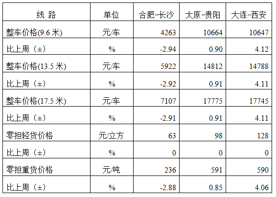 表1 本周部分線路平均價格及環(huán)比情況對比