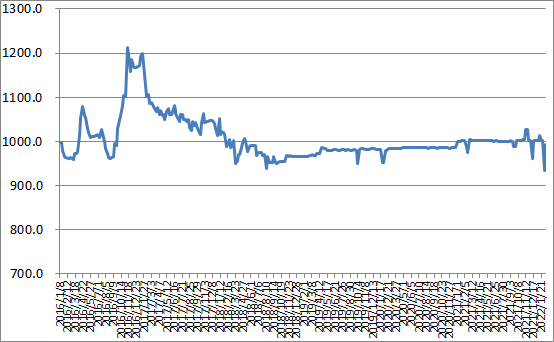 圖1 2016-2022年各周中國(guó)公路物流運(yùn)價(jià)指數(shù)
