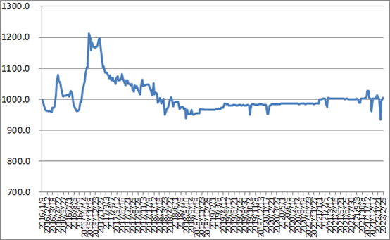 圖1 2016-2022年各周中國公路物流運(yùn)價指數(shù)