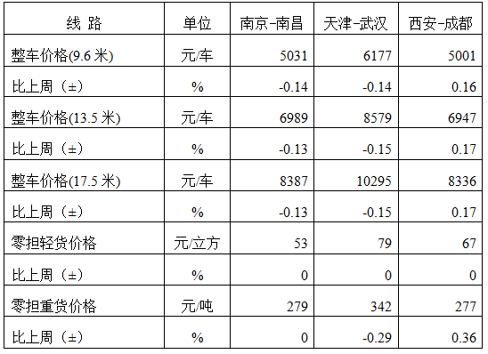 表1 本周部分線路平均價格及環(huán)比情況對比