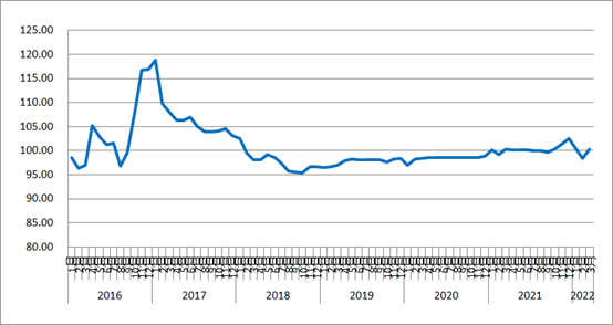 2022年3月份,由中國物流與采購聯合會和林安物流集團聯合調查的中國公路物流運價指數為100.3點,比上月回升2.03%,與去年同期基本持平。從周指數看,各周運價指數環比總體平穩,僅第三周運價指數環比略微回落。