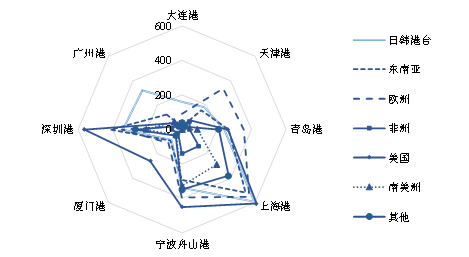 根據我國港口目前接卸的集裝箱船舶實際情況,以歐洲航線、美國航線為代表的部分遠洋干線使用船舶較大,需要能夠滿足10萬噸級船舶接卸的大型專業化集裝箱碼頭支撐和滿足運輸需求。