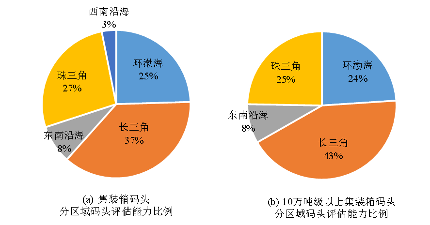圖5 2020年底我國沿海分區域集裝箱碼頭評估能力比例