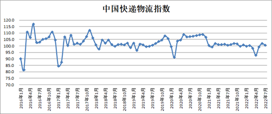 2022年7月,中國物流與采購聯合會發布的中國快遞物流指數為100.5%,比上月回落1.4個百分點。從分項指數看,需求端業務量指數均有所下降,其中商務快件指數和農村快件指數比上月回落1.3和4.6個百分點,回落至100%以下;跨境快件指數為100.5%,比上月回落0.9個百分點;從業人員指數和便利度指數總體保持平穩。綜合來看,本月在傳統生產淡季、高溫雨季天氣等季節性因素影響下,加之疫情散發等短期因素疊加,經濟運行增長態勢有所回調,企業生產經營放緩,產業活躍度明顯回落。但總的來看,短期影響因素總體可控,下半年國家層面應對“三重壓力”的政策舉措持續發力,裝備制造業和高技術制造業拉動作用較好,服務業穩步恢復,下半年經濟運行仍具備企穩回升基礎,快遞指數有望同步回升。