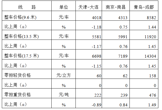 表1 本周部分線路平均價(jià)格及環(huán)比情況對(duì)比