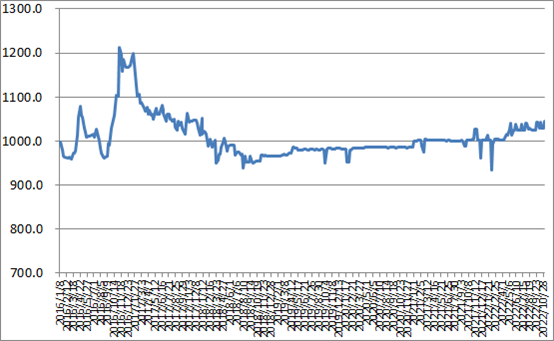本周(2022年10月31日-11月4日),由中國物流與采購聯合會和林安物流集團聯合調查的中國公路物流運價指數為1044.69點,比上周回升1.44%。
