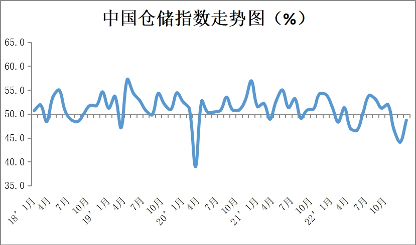 中國物流與采購聯合會發布的2022年12月份中國物流業景氣指數為46%,較上月回落0.4個百分點;中國倉儲指數為48.7%,較上月回升4.6個百分點。