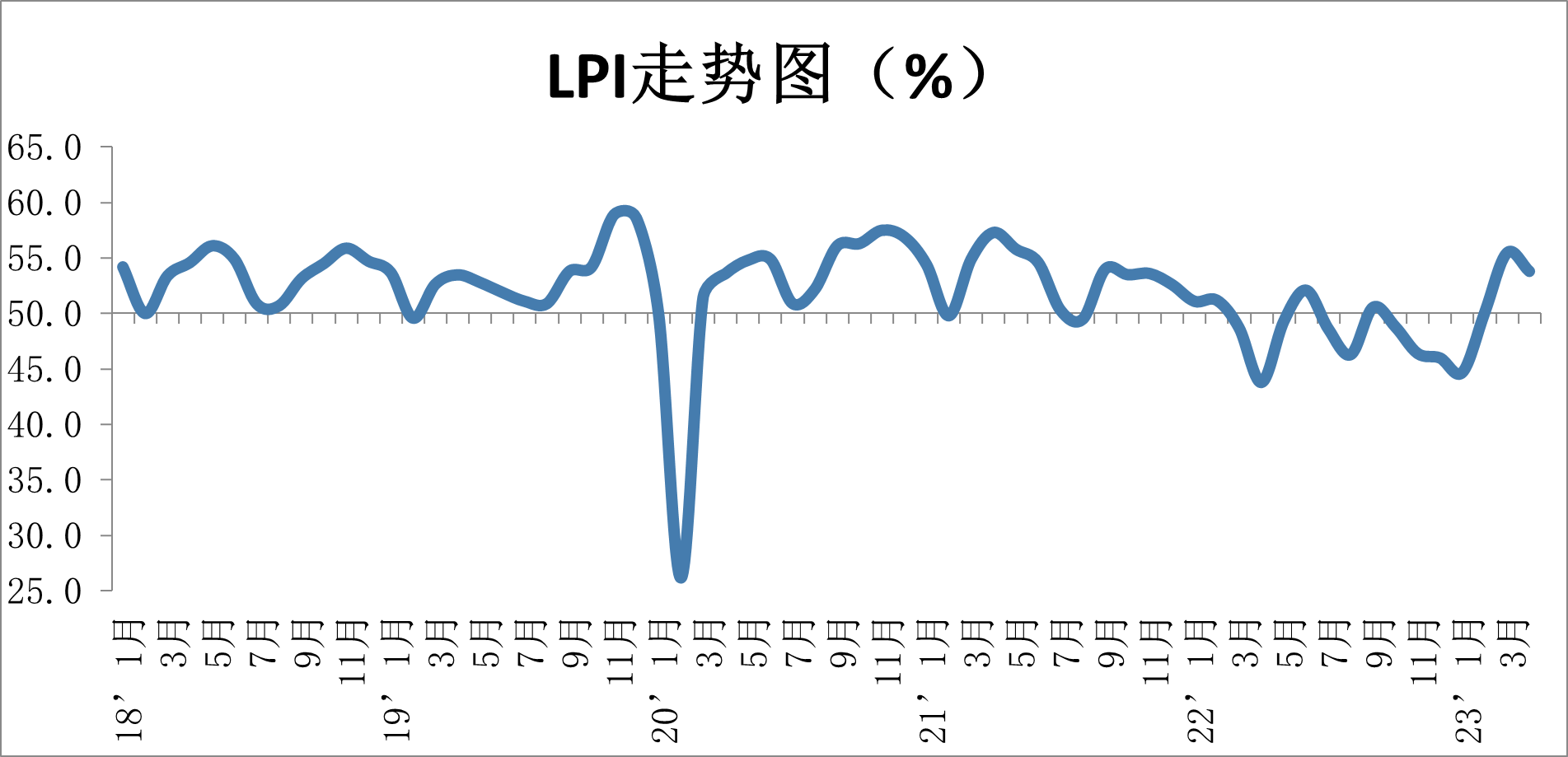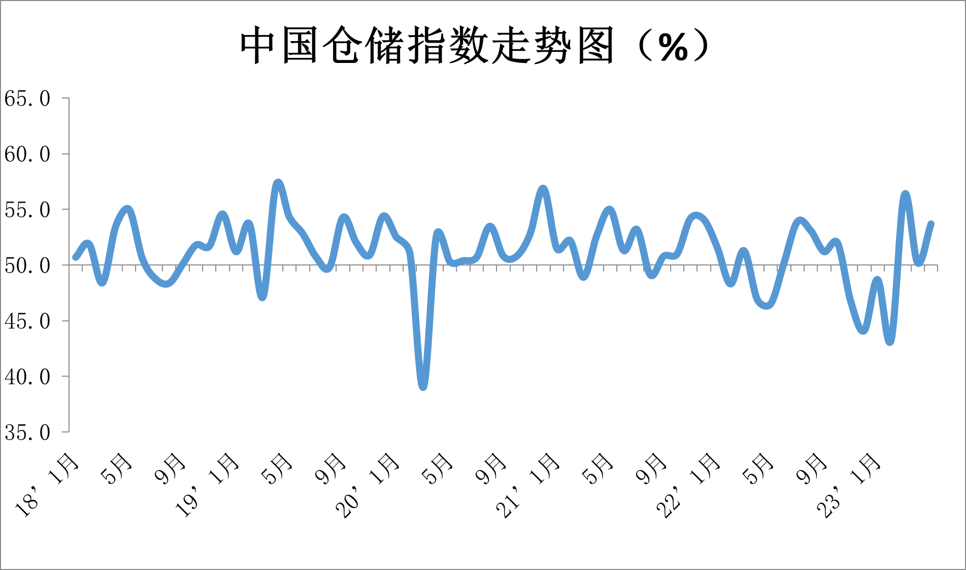 中國物流與采購聯(lián)合會發(fā)布的2023年4月份中國物流業(yè)景氣指數(shù)為53.8%,較上月回落1.7個(gè)百分點(diǎn);中國倉儲業(yè)指數(shù)為53.7%,較上月上升3.5個(gè)百分點(diǎn)。