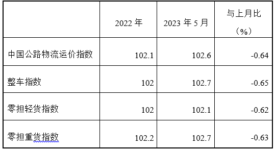 表1 2023年5月中國公路物流運價指數(shù)表